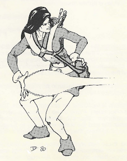 Cea by nature is a miser. She buries caches of treasure about the countryside to be used later. She tries to portray herself as a poor but studious magic-user. Cea values information greatly, although she seldom uses it. She enjoys being curious. Finally, she is very mischievous, often getting herself and her party into trouble. Although she will generally aid a party all she can, she will use her dimension door spell to escape the minute things look bad. In extreme cases she will teleport home. Usually she will feel insecure if there are less than 2 escape routes available to her.